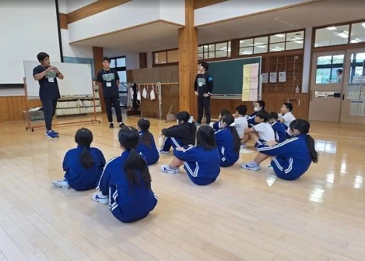 岩手県遠野市「上郷小学校」― 地元出身学生が母校で安全行動ワークを実施