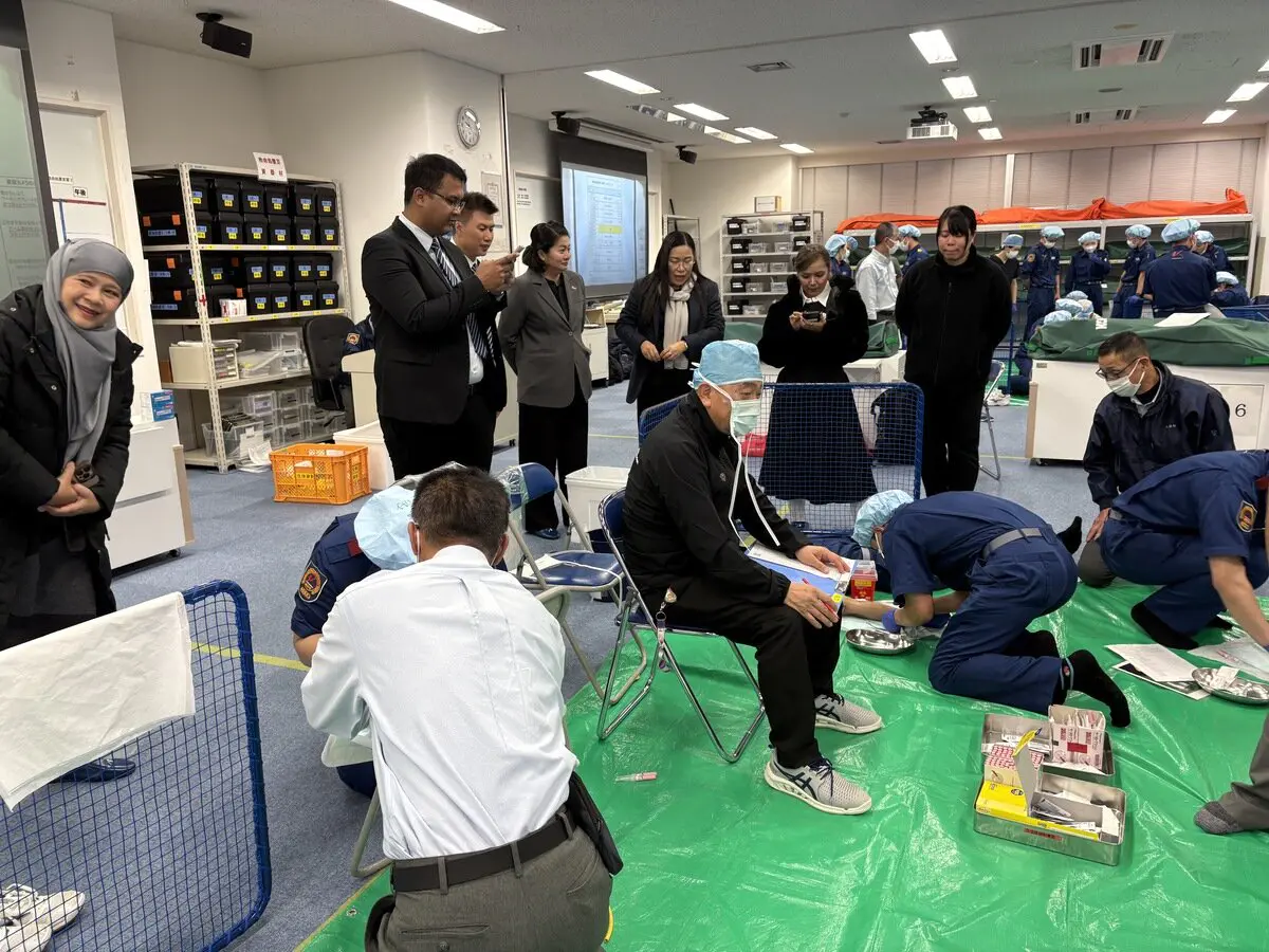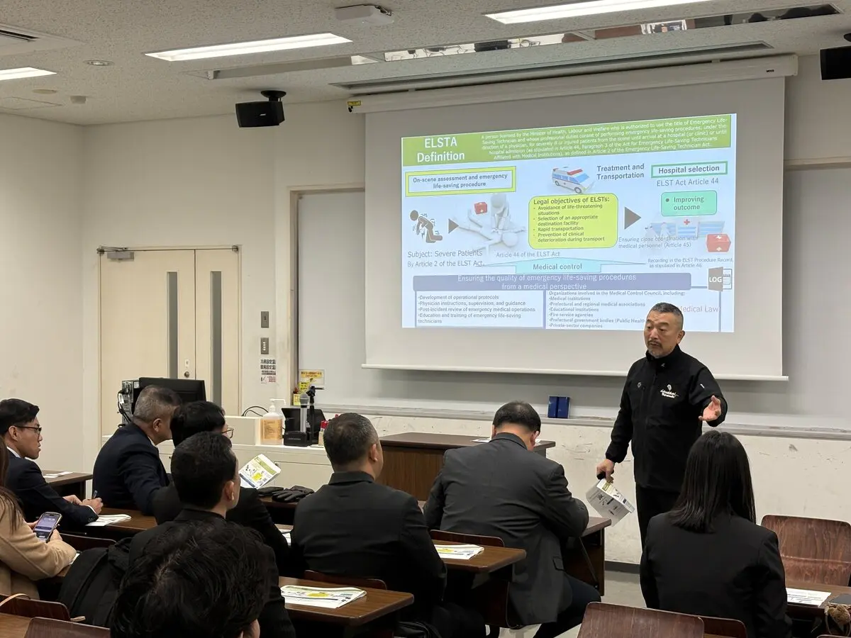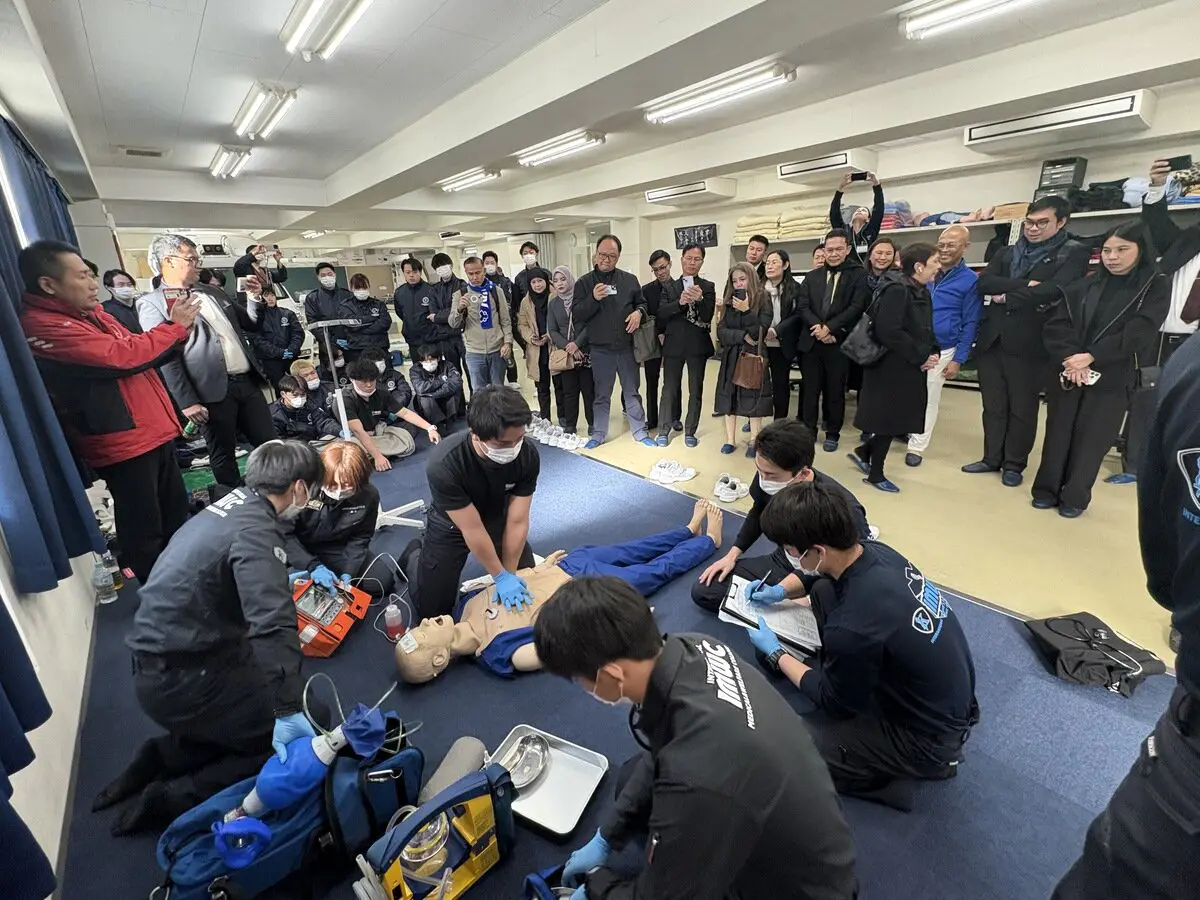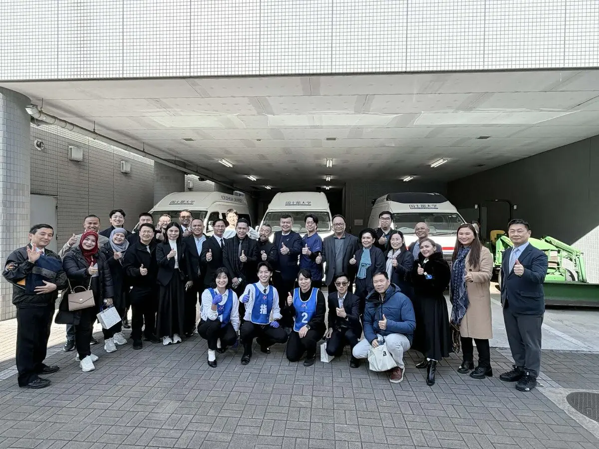 1月13日から16日にかけて、タイ救急救命士協会が主催する日本の病院前救急医療体制および救急救命士教育に関する視察研修が行われ、タイ王国の国立4大学の学長ら20人が本学多摩キャンパスを視察しました。本視察研修は、本学と海外協定校の継続的な交流を行ってきた救急システム研究科長田中秀治教授、防災・救急救助総合研究所植田広樹教授、石﨑貴准教授の全面的な協力により実現しました。