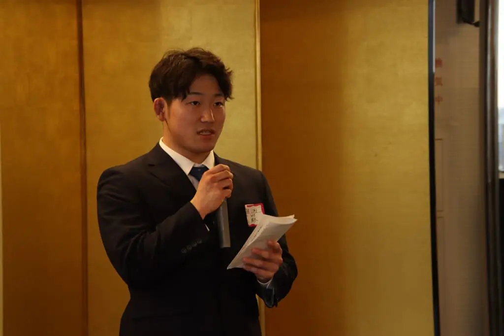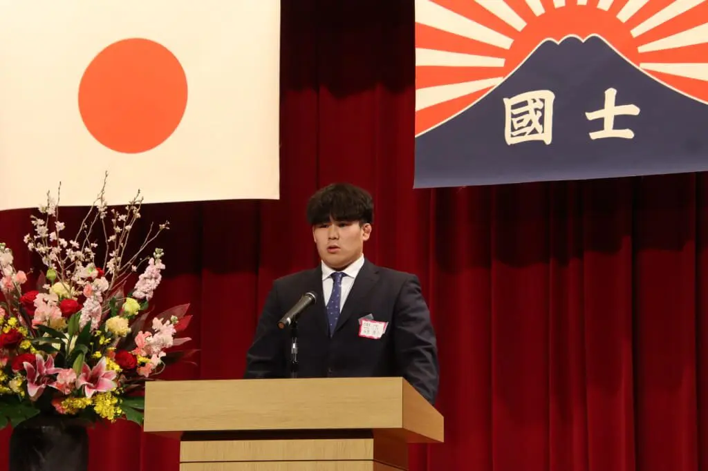 最後に66期現主将の内山椋太さん(体3年)があいさつに立ち、抱負と決意を述べるとともにレスリング部への支援を呼びかけました。祝賀行事は本学レスリング部の発展を祈って同部OBOG会・箕越秀美会長(14期)による手締めでお開きとなりました。
