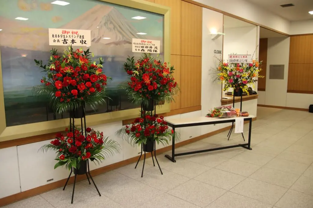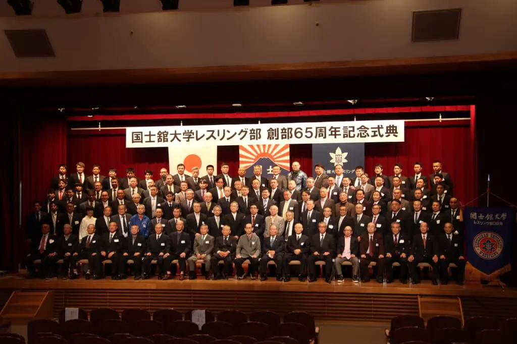 レスリング部は今年、創設65周年を迎え、2月17日に記念祝賀行事を世田谷キャンパスで開催しました。会場には本学関係者や部員、卒業生のほか、レスリング界の来賓など約200人が集い、足跡を振り返るとともに更なる発展を期して盛大に祝いました。