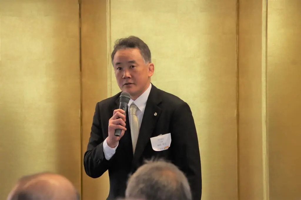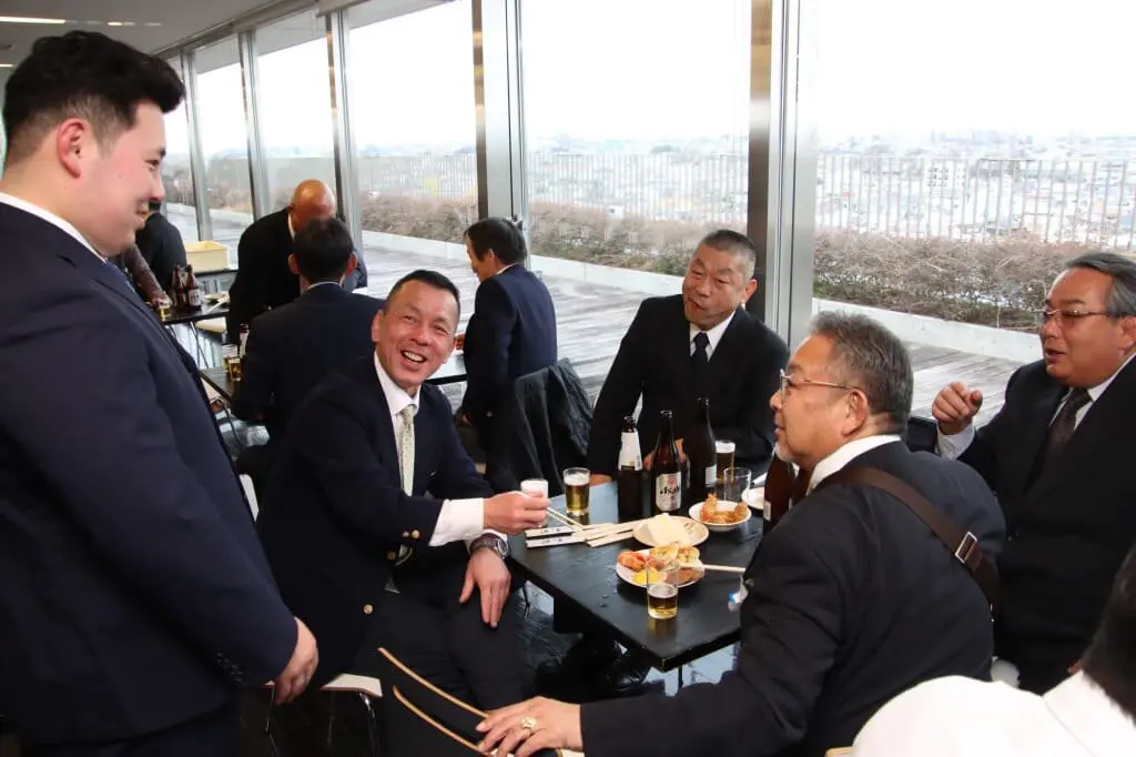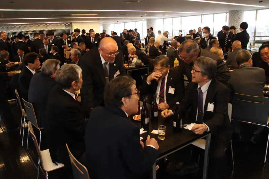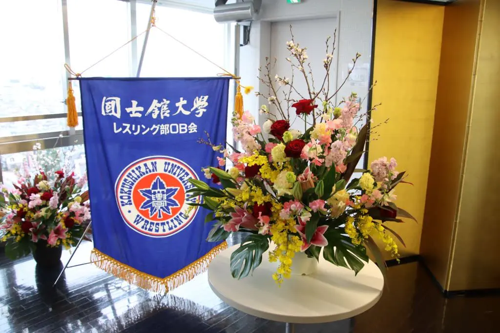 祝賀会は、34号館10階スカイラウンジで催され、開会にあたりレスリング部の和田貴広監督(35期)が同部の発展興隆に導いた卒業生や関係者への謝辞を述べました。そのほか日本レスリング協会・福田富昭名誉会長、韓国レスリング協会・韓明愚副会長らがそれぞれ祝意を表しました。卒業生代表の永野要祐氏(12期)の発声で、乾杯後は各テーブルで懇親の輪が広がり、学生時代を共に過ごした友人らと久しぶりの再会を喜んだり、現役部員らとの交流を楽しむ姿が見られました。