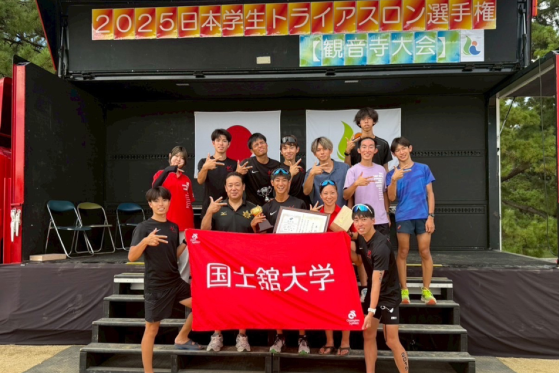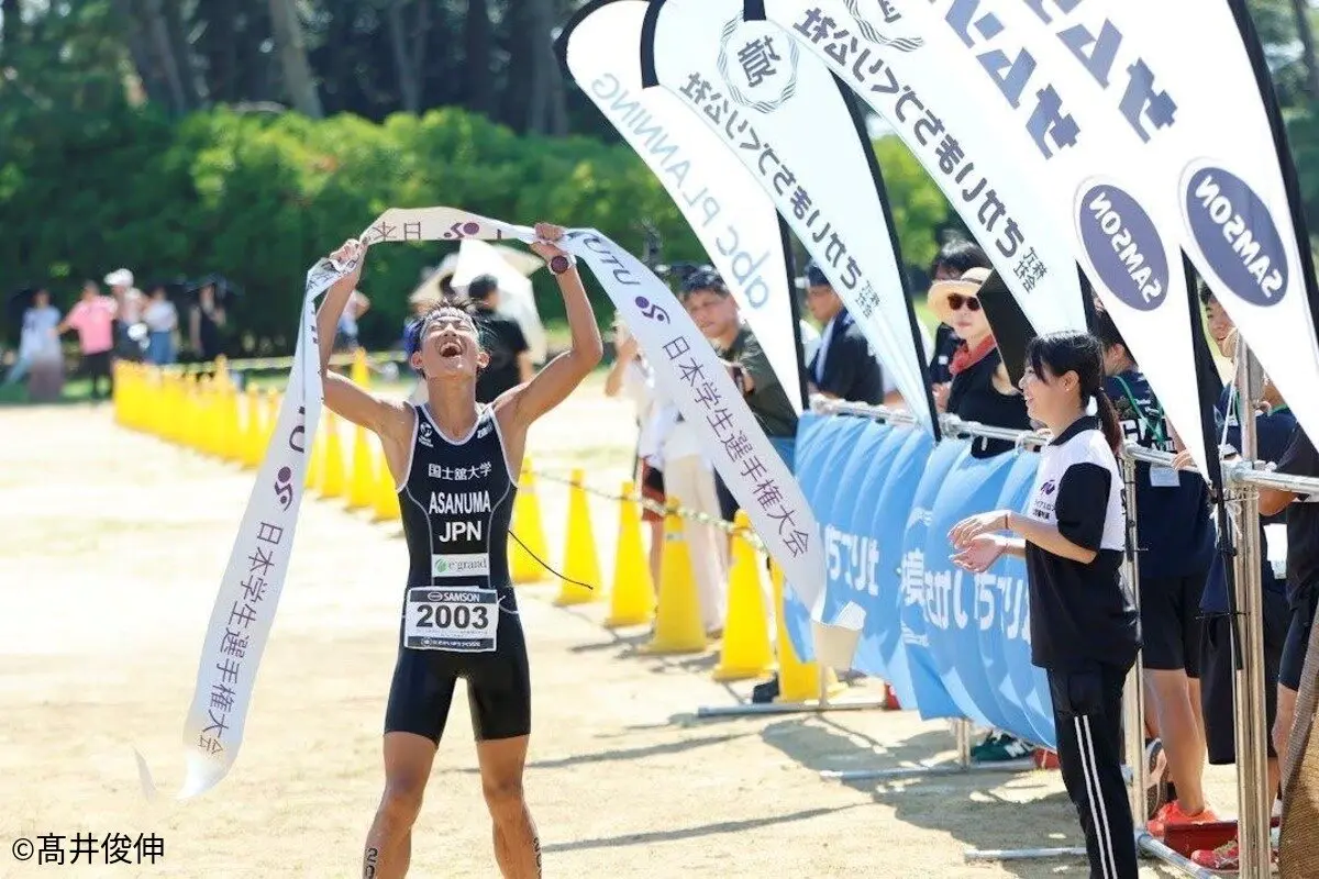 浅沼選手は「国士舘大学トライアスロン部の一員として、悲願のタイトルを獲ることができうれしいです。当日は、非常に気温が高いレースとななりましたが、トライアスロン部の仲間たちの応援が力になり、自分の強みを発揮することができました。仲間たちの応援に心から感謝します」とレースを振り返るとともに、「目指すは2032年に開催予定のブリスベンオリンピック。そのためにも、在学中に日本選手権のタイトルを獲れるよう練習に励んでいきます」と力強く話しました。