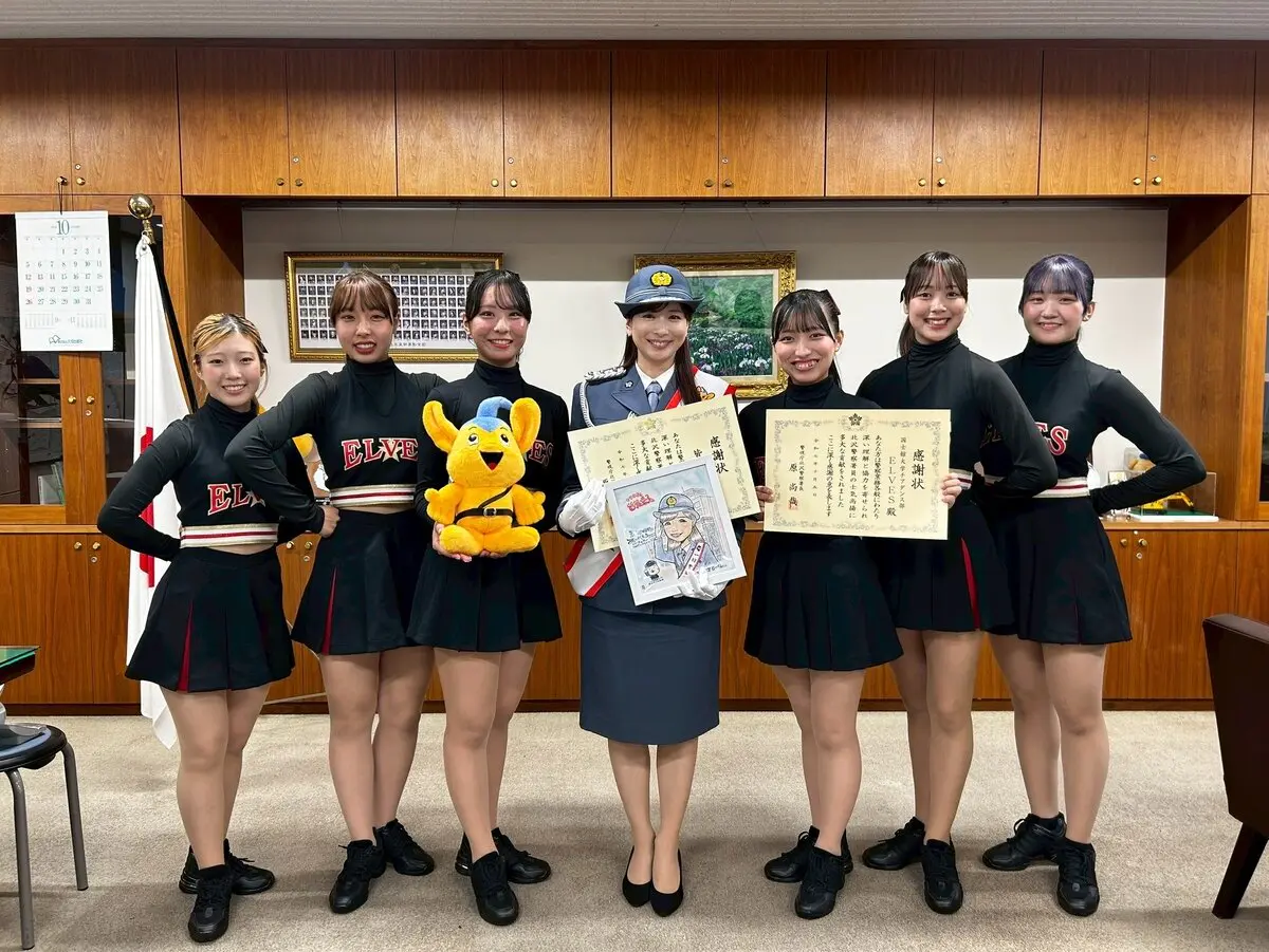 イベント終了後は、北沢警察署に場所を移して、ELVESに対し警察業務各般にわたり深い理解と協力を寄せ北沢警察署員の士気高揚に多大な貢献をしたとして、同署の原直哉署長から感謝状と記念品の警視庁マスコットキャラクターのピーポくん人形が贈られました。