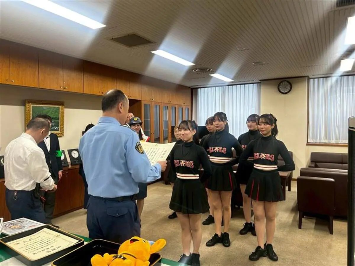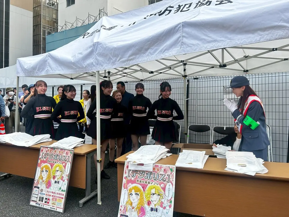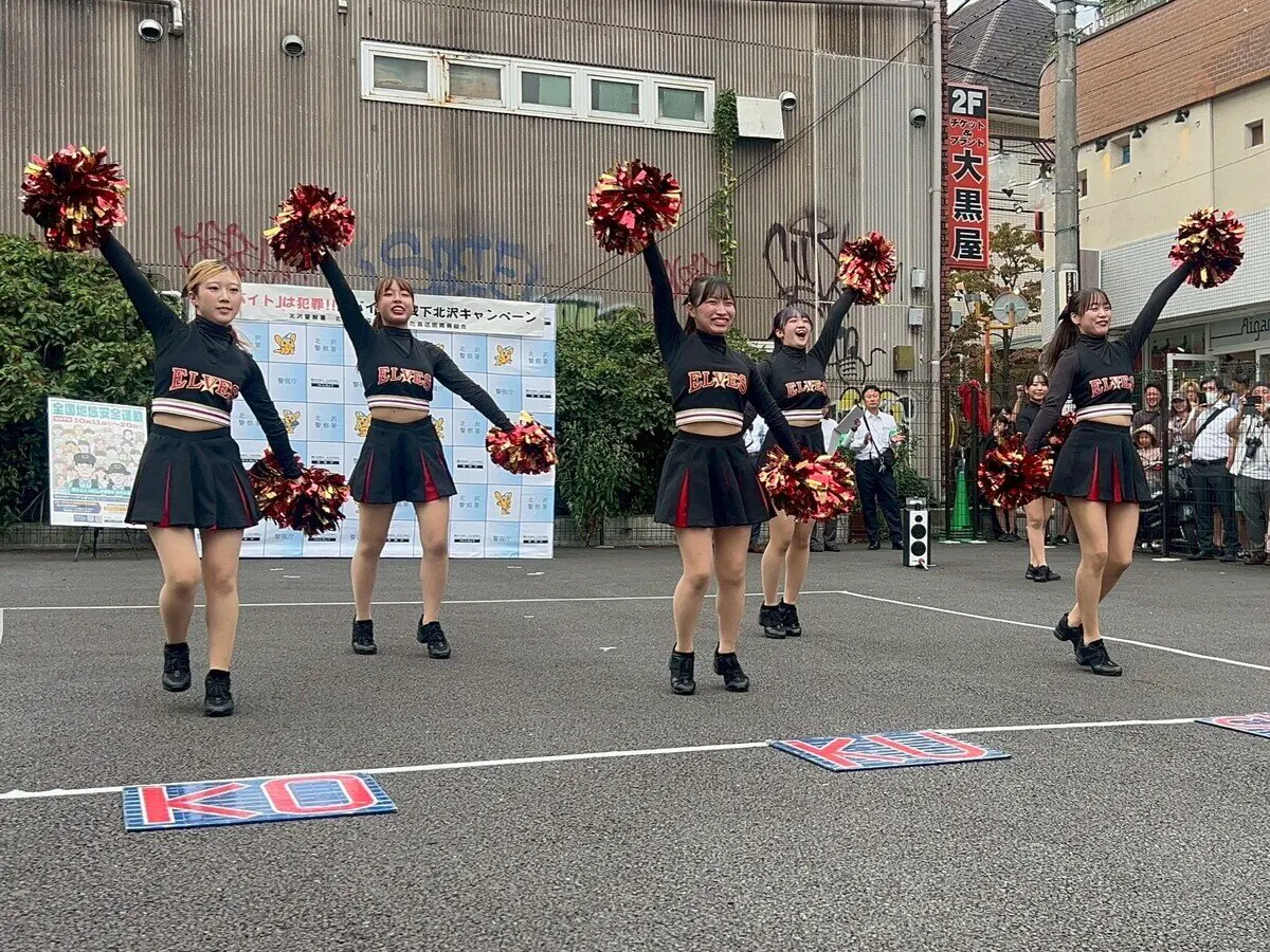 10月5日、北沢警察署による闇バイト撲滅を呼びかける広報啓発キャンペーンが開催され、本学チアダンス部ELVESが演舞の披露や広報啓発活動を行いました。