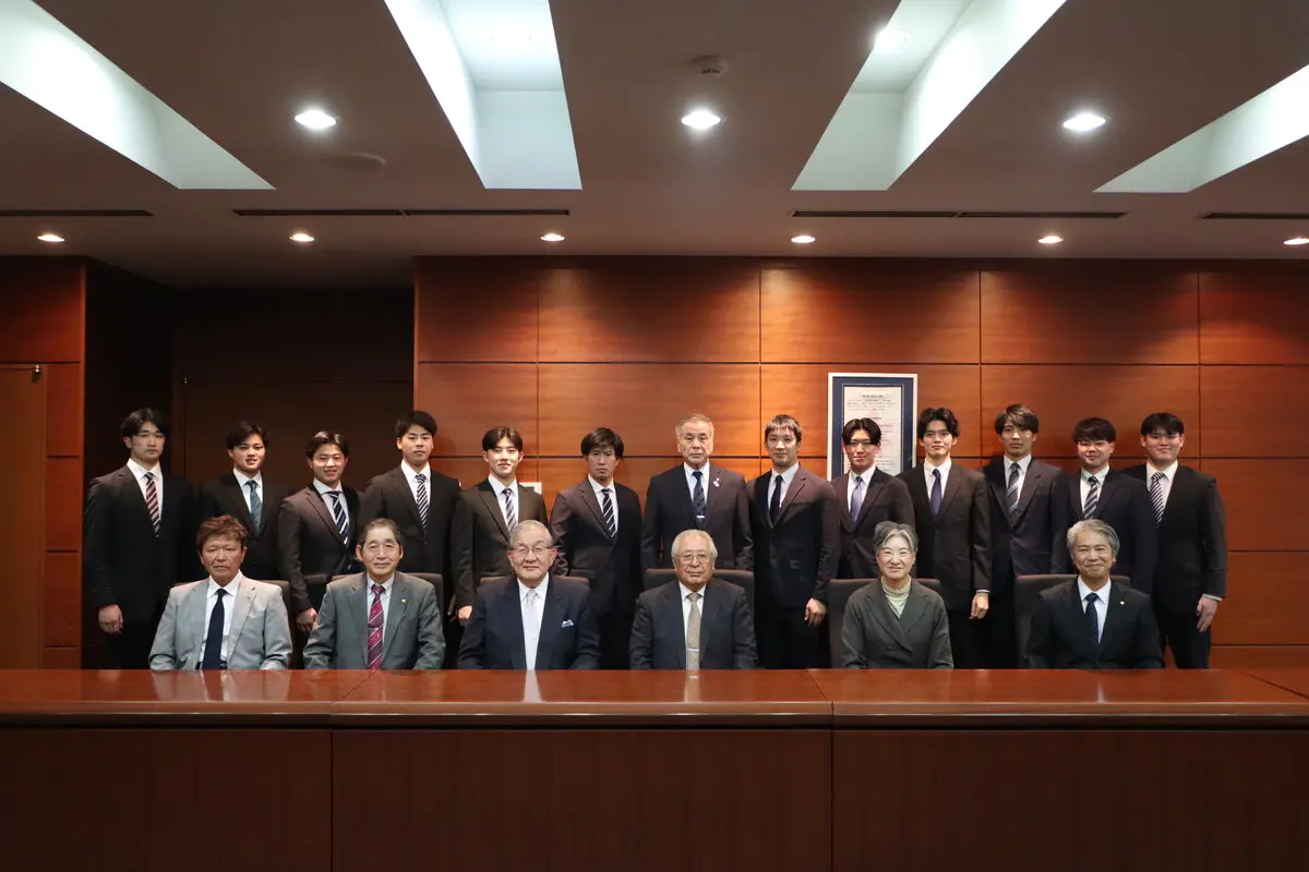 その後、選手一人一人が厳しい試合を勝ちぬいた要因を発表しました。キャプテンを務める中田選手は、選手だけでなく部員全員で厳しい練習を乗り越えたことは自信になったと述べ、他の選手らも他大学と比べても圧倒的な練習量や朝早くから練習してきたことがつながったと述べました。