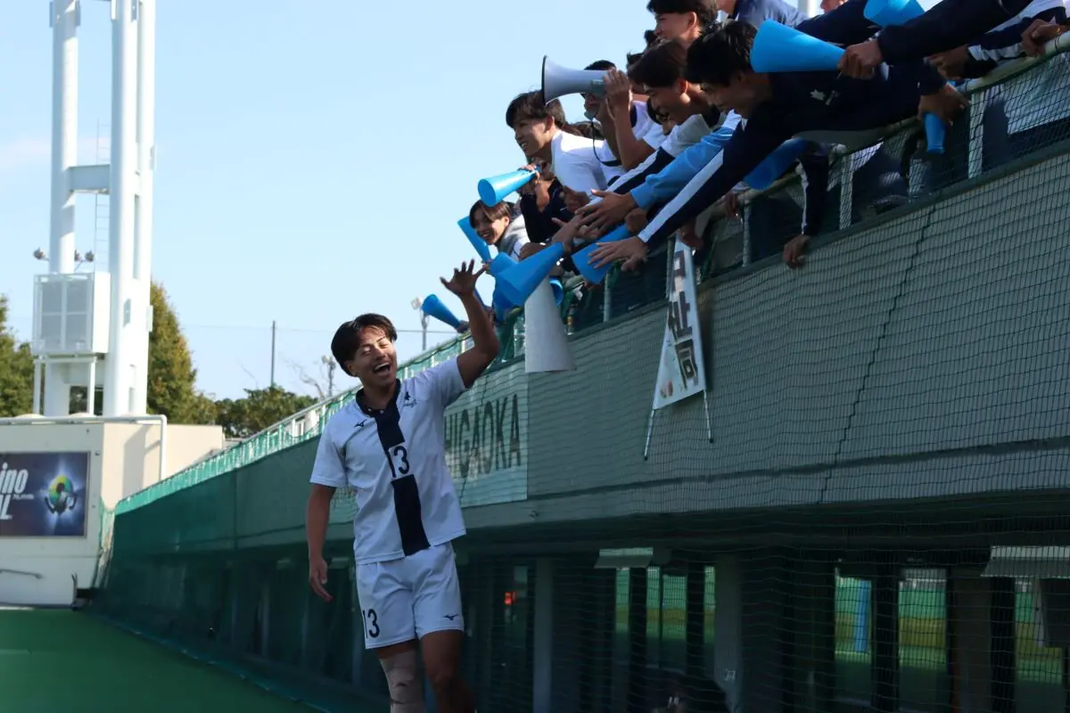 さらに、攻撃の手を緩めない本学は、高柳英二郎選手(同4年)からのアシストを受けた田中祉同選手(同4年)の弾丸シュートがさく裂。3-1で勝利し、最終節を白星で締めくくりました。