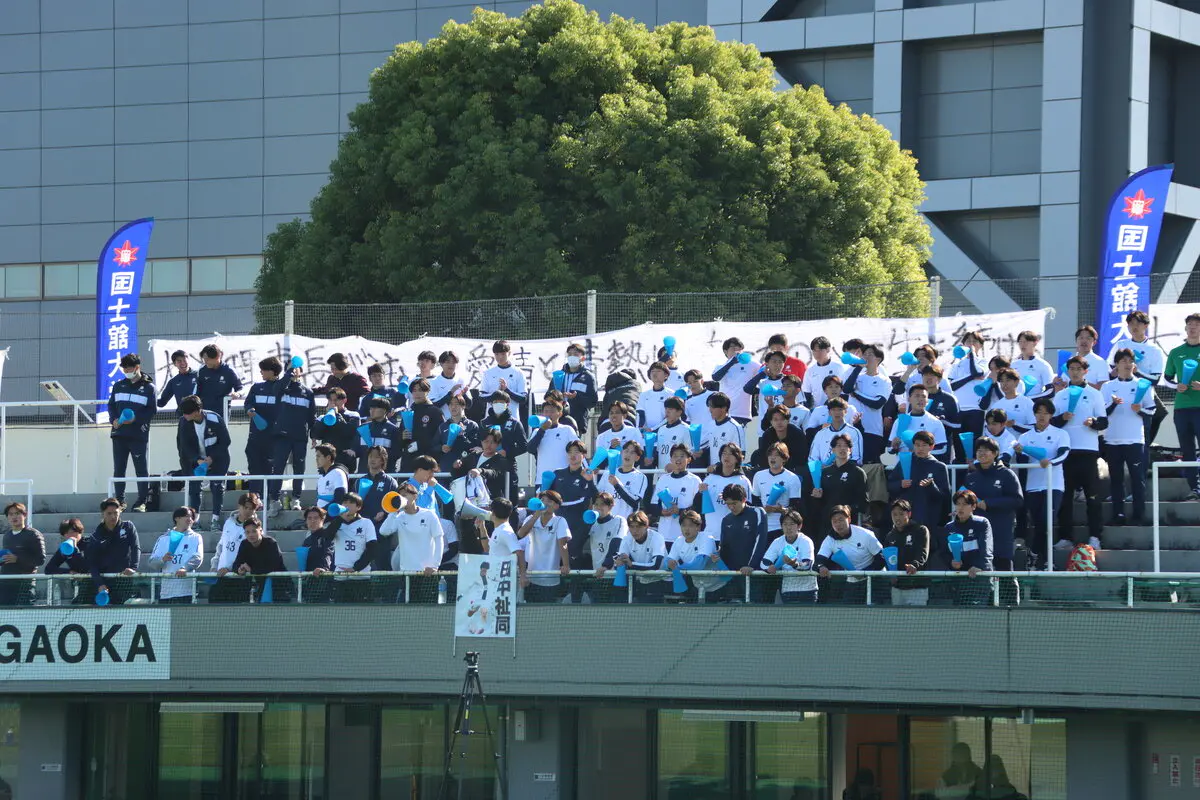 選手一同から聞かれたのは「悔しい」の言葉と「無冠で終わっていい年ではない」という想い。受け継がれてきたサッカー部の伝統を胸に、故大澤英雄前理事長(サッカー部初代主将・元監督)と故村岡幸彦名誉教授(元部長)に日本一の吉報を届けるため、国士舘イレブンの戦いは最高峰の舞台へと続いていきます。