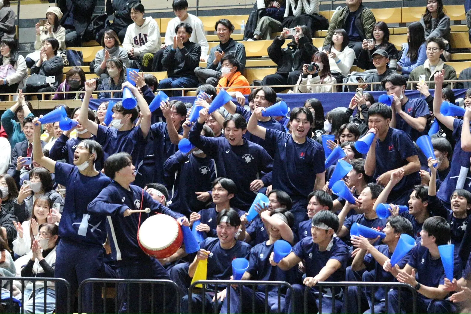 バレーボール部(男子)は本大会で目覚ましい成長ぶりを見せ、史上初の決勝進出、そして、準優勝という快挙を達成しました。決勝戦では、日本代表の竹松魁柊選手(体育2年)をはじめ、総得点12点でチームに勢いをつけた工藤築選手(同4年)や総得点6点をマークした柳沢響木選手(21ア1年)らが活躍し、チームとしての結束力を発揮しました。守備面では、主将の勝又元哉選手(体育4年)がバックコートで10本のレセプション機会を担い、6割を安定返球に繋げチームを支えました。